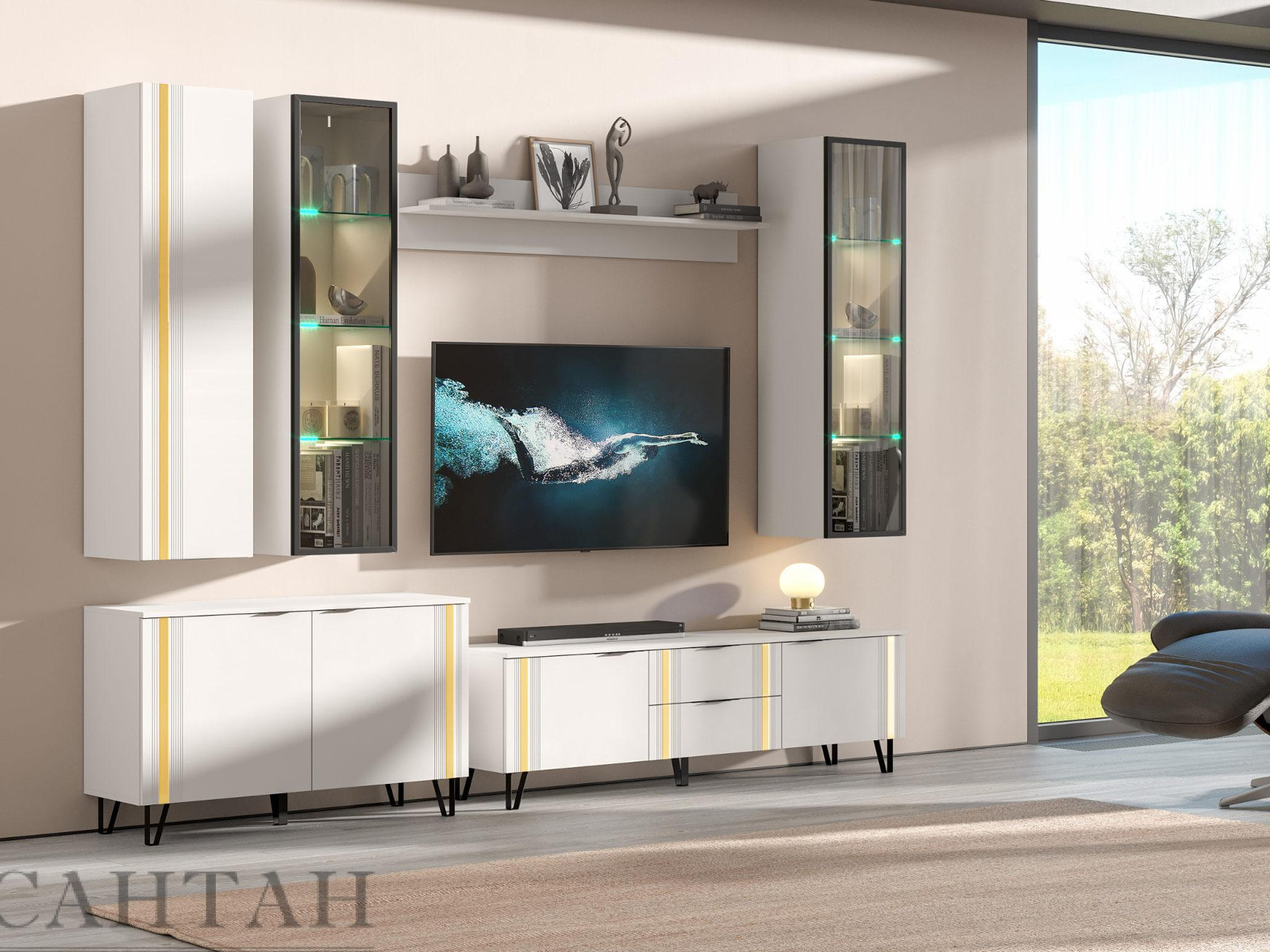 - Фасады МДФ украшены декоративной металлической лентой в цвете "Золото браш".