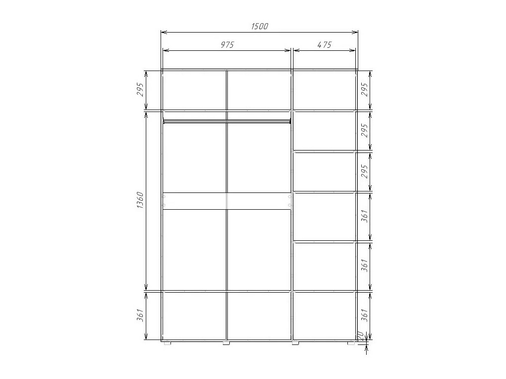 - Шкаф Гранд ГШК/1-21-15-222 (двери тип 2) с одним зеркалом