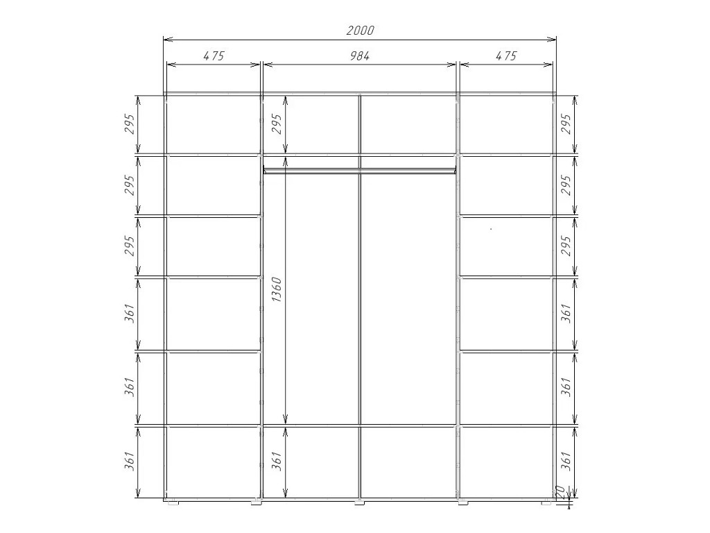 - Шкаф Гранд ГШК/1-21-20-2222 (двери тип 2) с двумя зеркалами