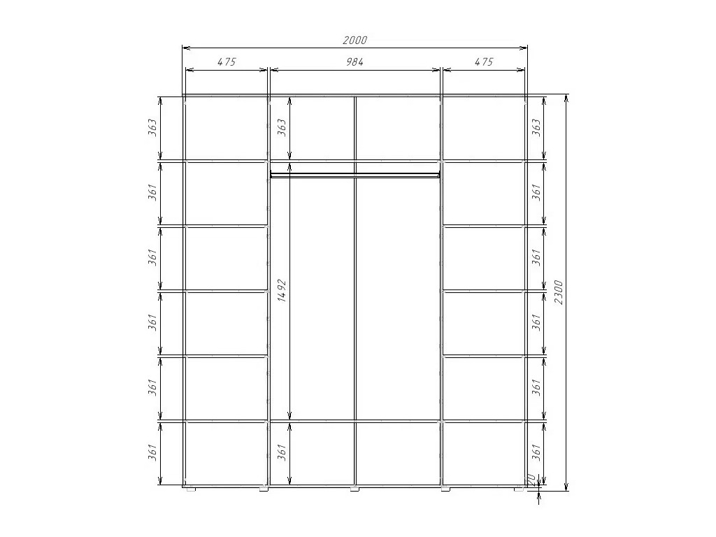 - Шкаф Гранд ГШК/1-23-20-2222 (двери тип 2) с четырьмя зеркалами