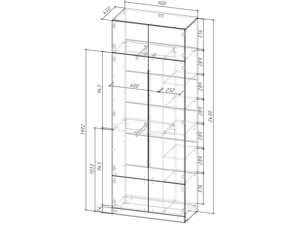 Габаритные размеры: Д.900 х В.2400 х Г.450 мм.