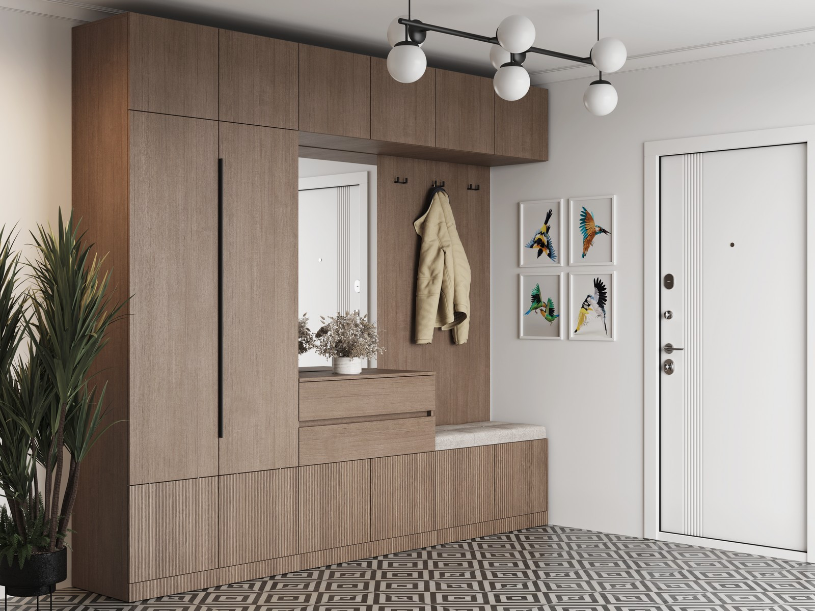 Ниши с вешалками равнозначные по габаритному размеру Д.600 х В.943 х Г.426 мм.