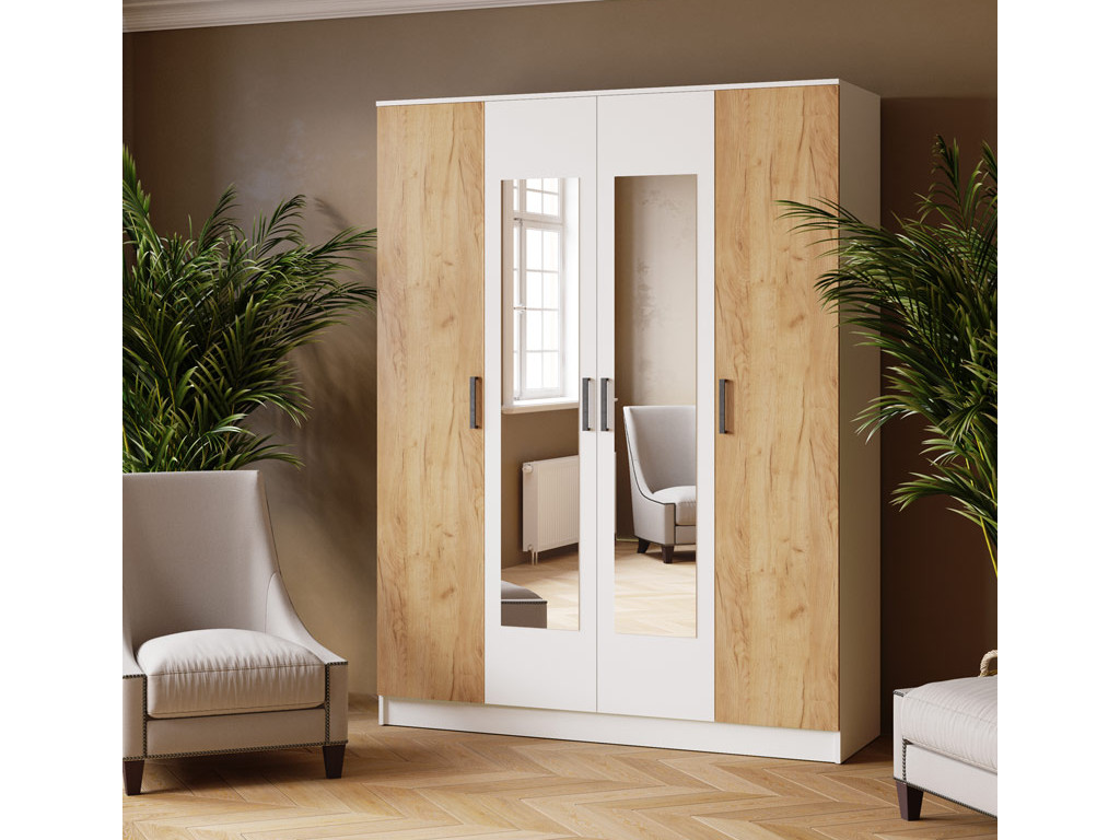 - Шкаф комбинированный Ларс 1600 белый-дуб крафт золотой