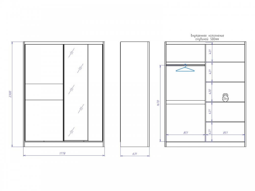 Размер ШхГхВ: 1778*631*2300 мм
