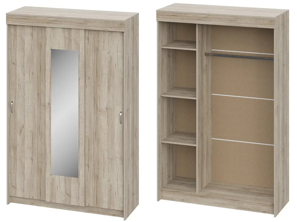 Шкаф-купе 3-х створчатый Бассо дуб крафт серый
