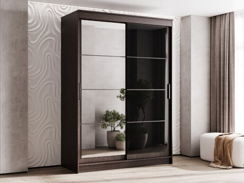 - Шкаф-купе Гранд-1 1600 Дуб Венге-двери Зеркало-Лакобель черный