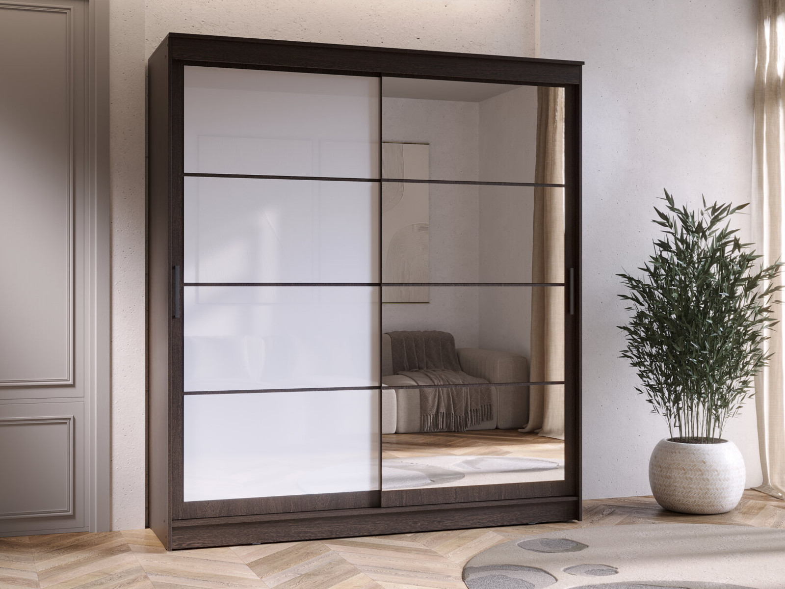 - Шкаф-купе Гранд-1 2000 Дуб Венге-двери Зеркало-Лакобель белый