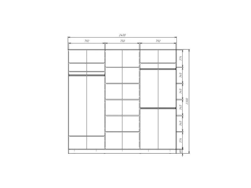 - 3 двери верхняя и нижняя вставка – Зеркало, центральная – ДСП 10 мм.