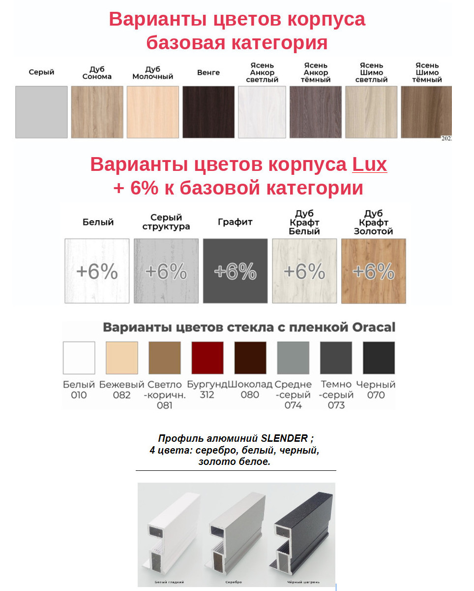 Профиль алюминий SLENDER: 4 цвета: серебро, белый, черный, золото белое.