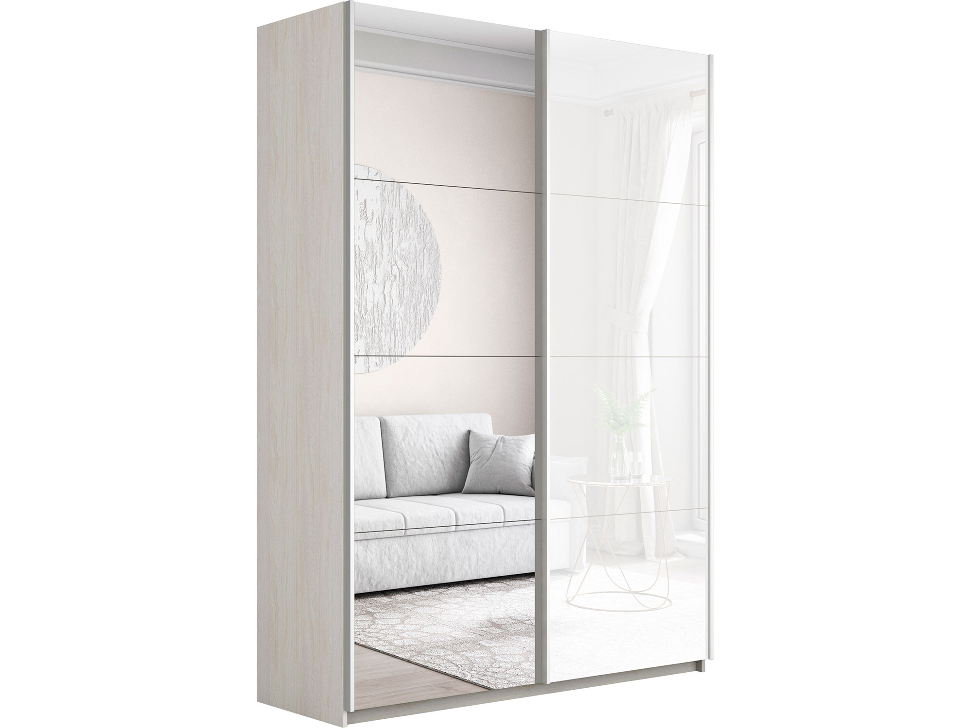 Шкаф-купе Прайм 2-х дверный 1200 Зеркало/Стекло Белое Ясень Анкор Светлый