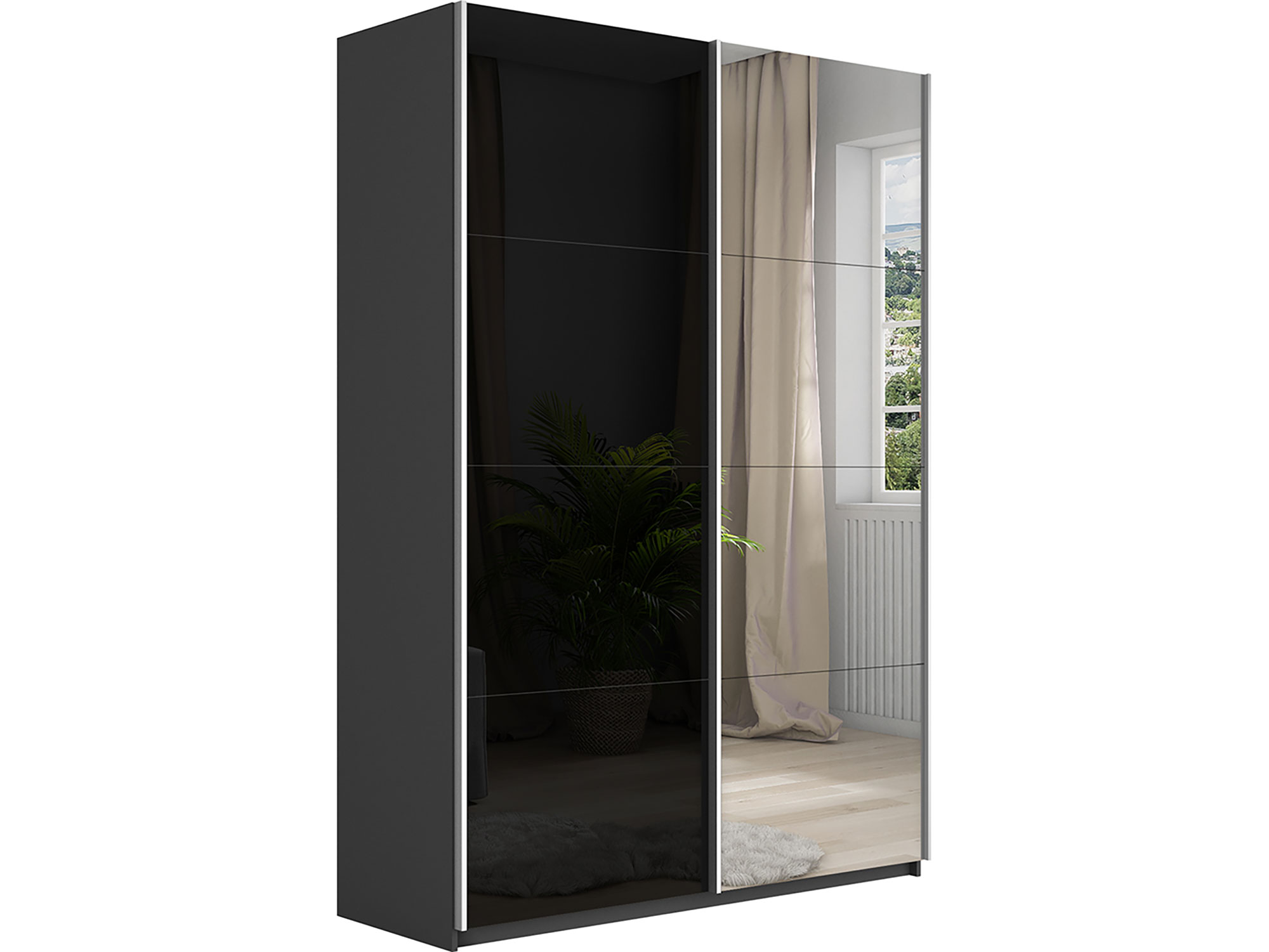 - Шкаф-купе Прайм 2-х дверный 1200 Зеркало/Стекло Черное Серый Диамант