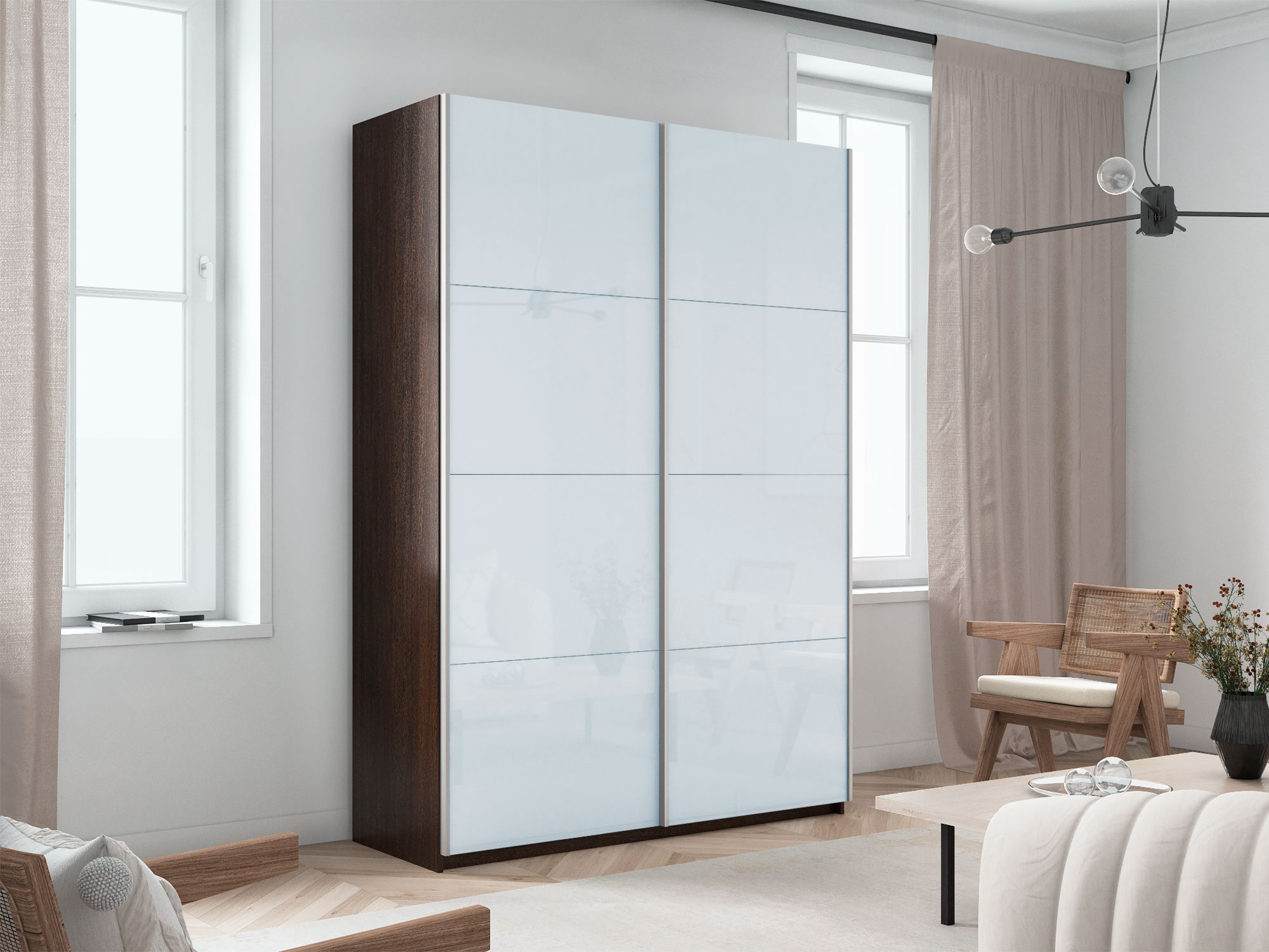 - Шкаф-купе Прайм 2-х дверный 1600 Стекло Белое Венге
