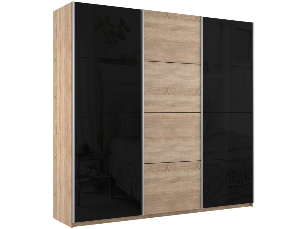 - Шкаф-купе Прайм 3-х дверный 1800 два Стекла Черные/ДСП Сонома