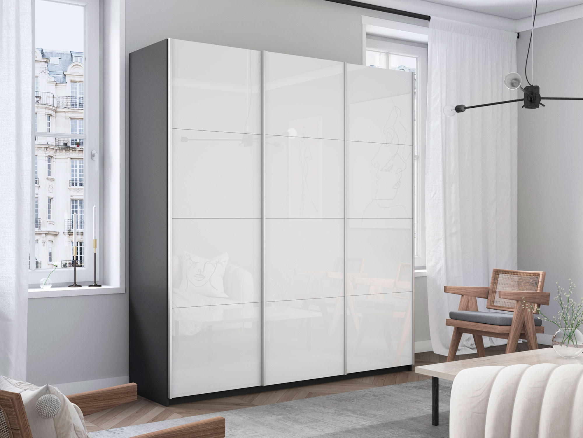 - Шкаф-купе Прайм 3-х дверный 1800 три стекла белые Серый Диамант