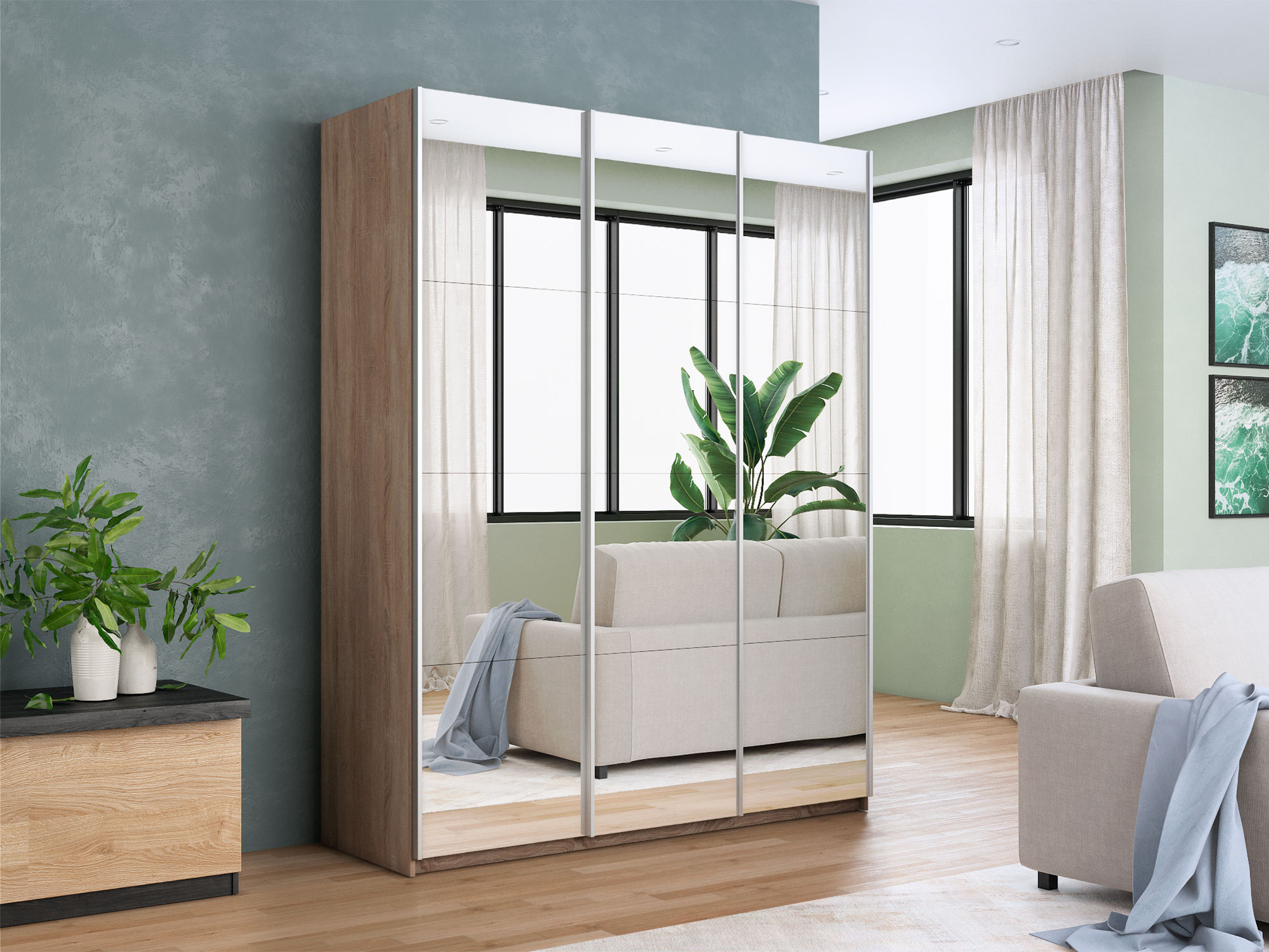 - Шкаф-купе Прайм 3-х дверный 1800 три зеркала Сонома