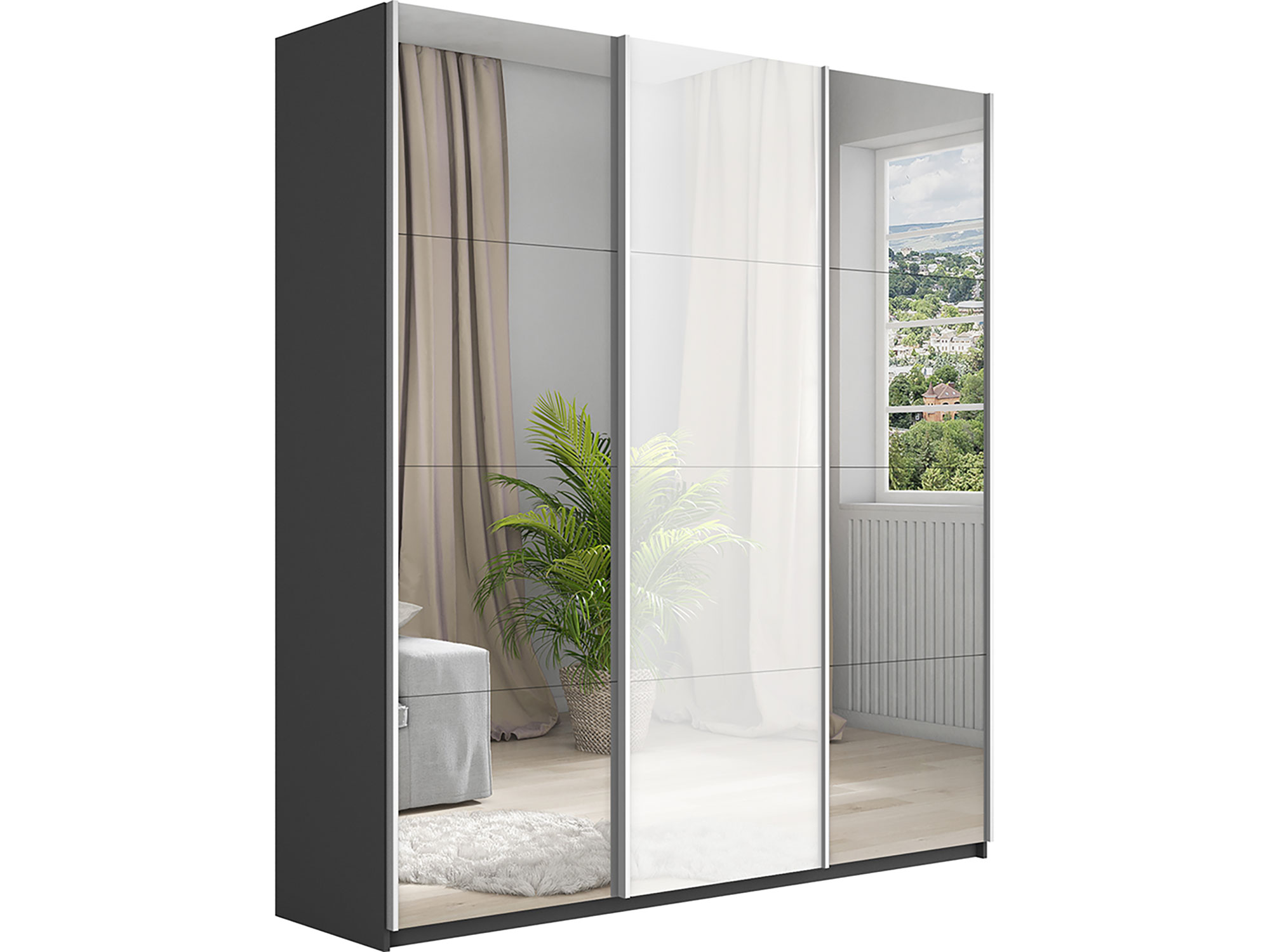 - Шкаф-купе Прайм 3-х дверный 1800 Зеркало/Стекло Белое/Зеркало Серый Диамант