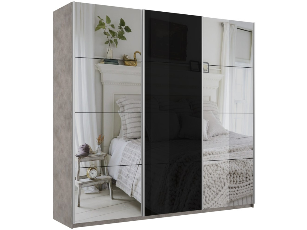 Шкаф-купе Прайм 3-х дверный 1800 Зеркало/Стекло Черное/Зеркало Бетон
