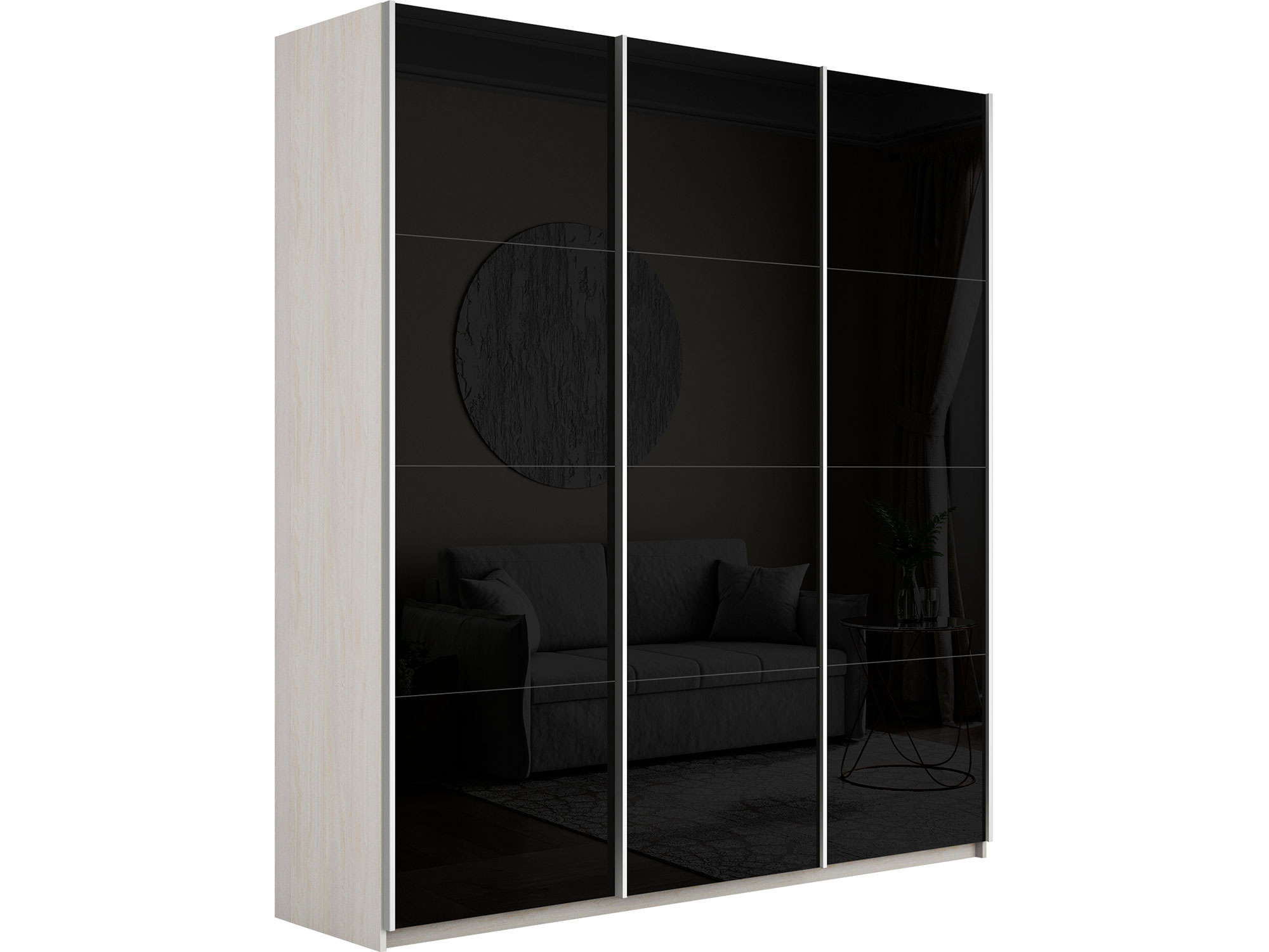 - Шкаф-купе Прайм 3-х дверный 2100 три стекла черные Ясень Анкор Светлый