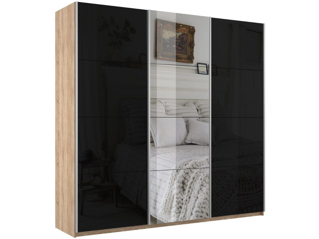 Шкаф-купе Прайм 3-х дверный 2100 Зеркало/Стекло Черное/Зеркало Сонома