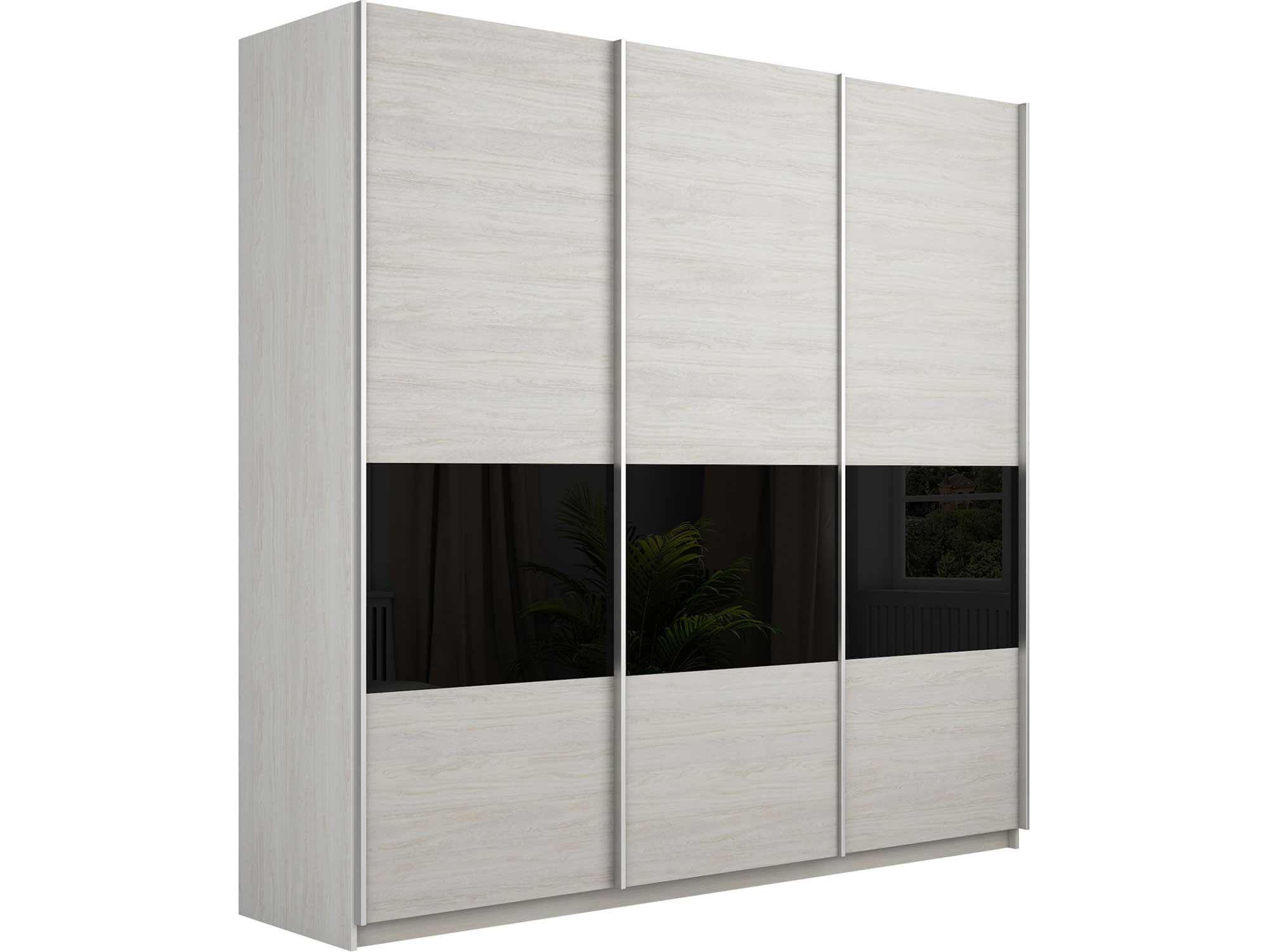 - Шкаф-купе Прайм Широкий 3-х дверный ДСП/вставки Стекло Черное Ясень Анкор Светлый