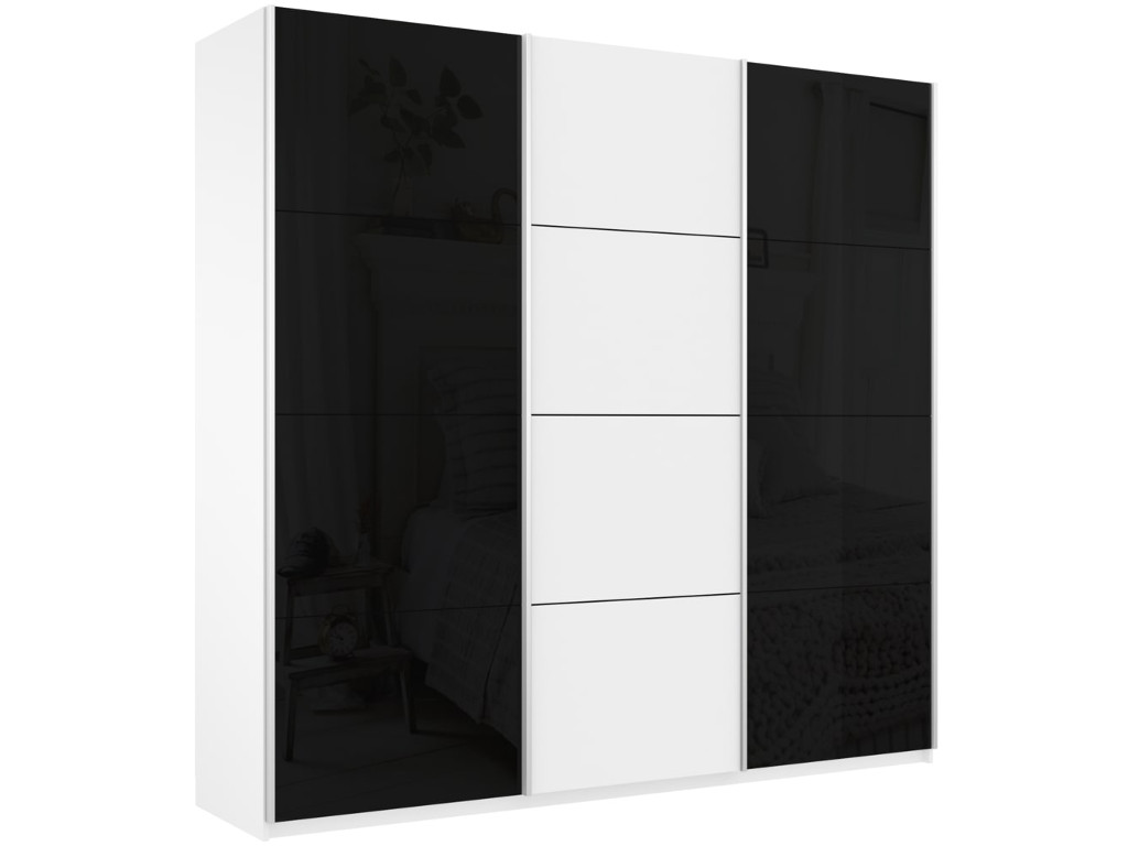 - Шкаф-купе Прайм Широкий 3-х дверный два черных стекла/ДСП Белый Снег