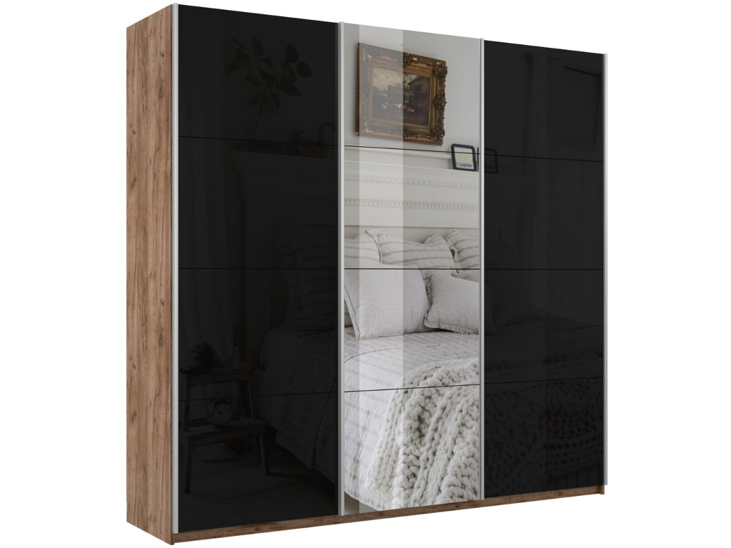 - Шкаф-купе Прайм Широкий 3-х дверный два черных стекла/зеркало Крафт табачный
