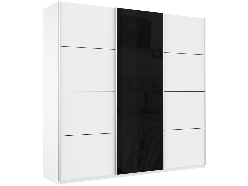 - Шкаф-купе Прайм Широкий 3-х дверный два ДСП/Стекло Черное Белый Снег