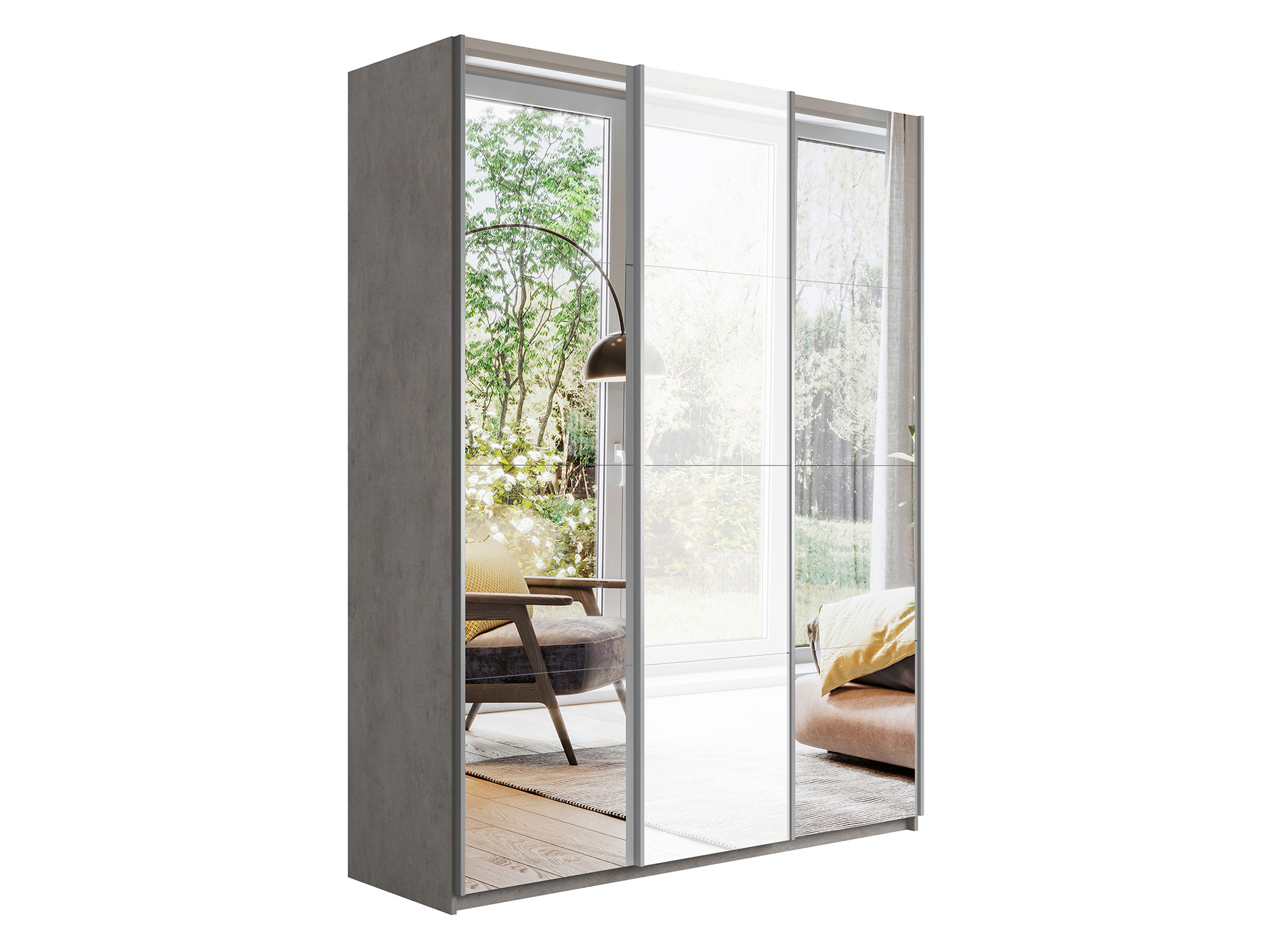 - Шкаф-купе Прайм Широкий 3-х дверный два зеркала/стекло белое Бетон