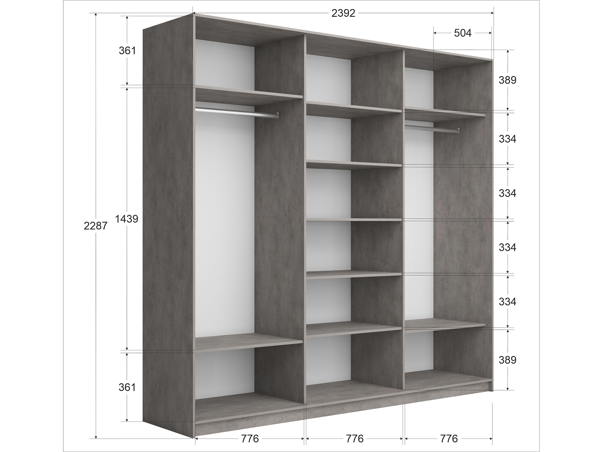 - Усиленная навесная система дверей помогает ходовому профилю выдерживать высокие нагрузки, а также сохраняет полезную площадь внутри шкафа, благодаря установке снаружи корпуса