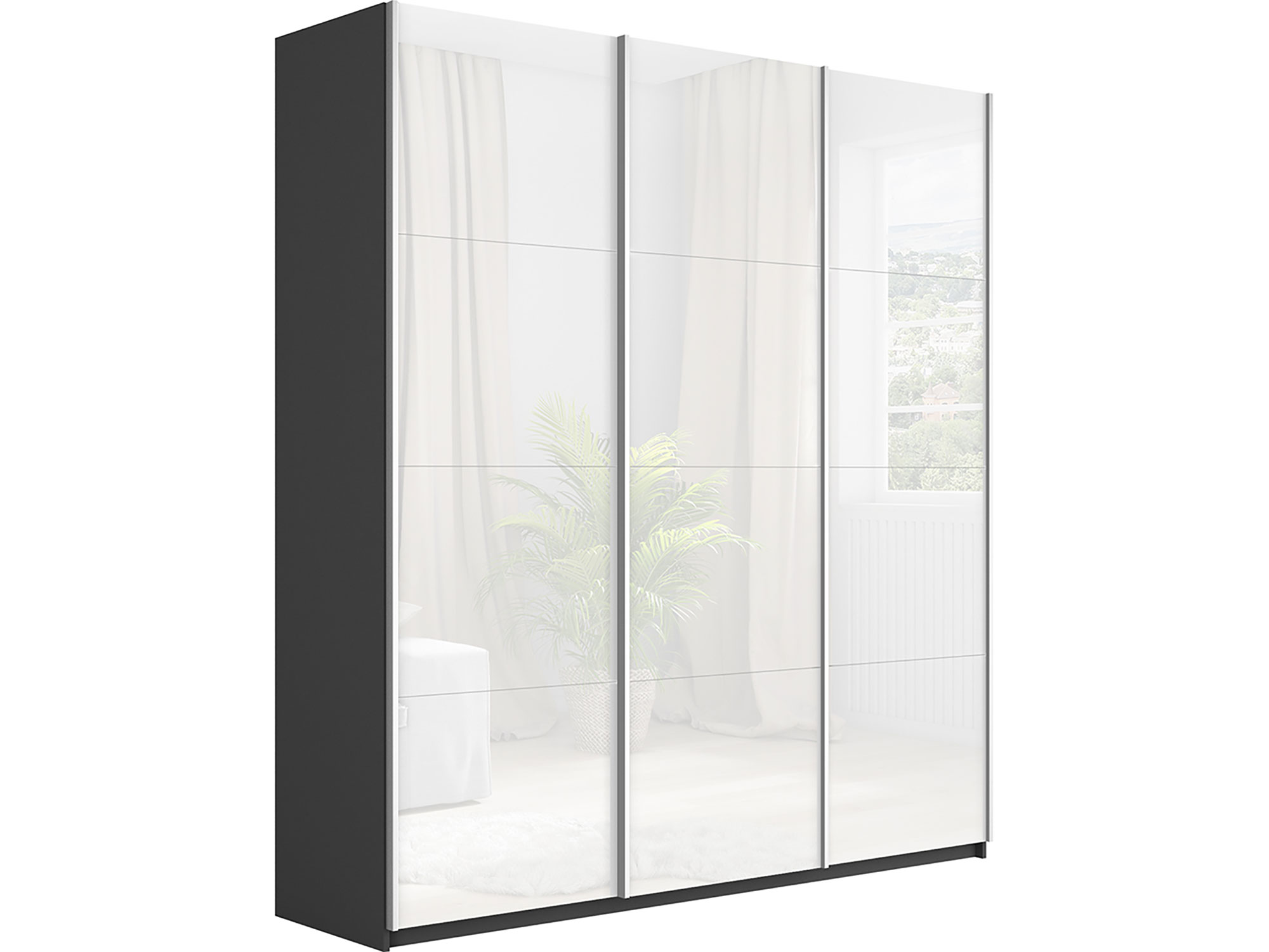 - Шкаф-купе Прайм Широкий 3-х дверный три белых стекла Серый Диамант