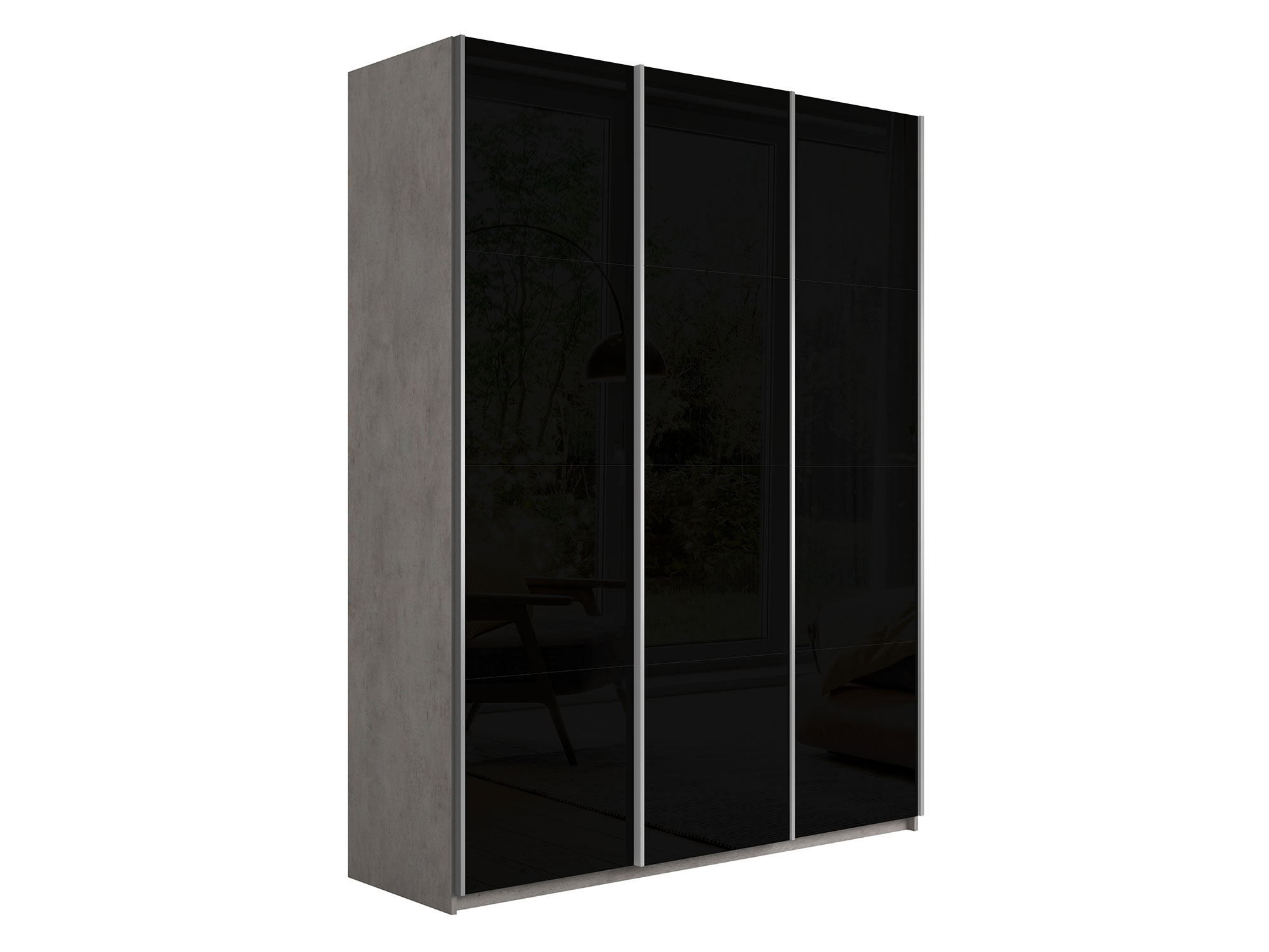 - Шкаф-купе Прайм Широкий 3-х дверный три черных стекла Бетон