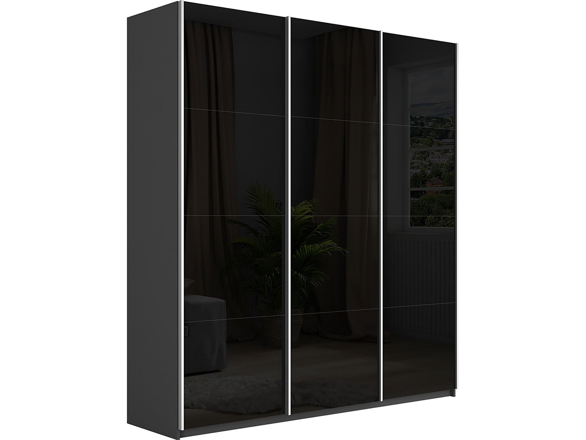 - Шкаф-купе Прайм Широкий 3-х дверный три черных стекла Серый Диамант