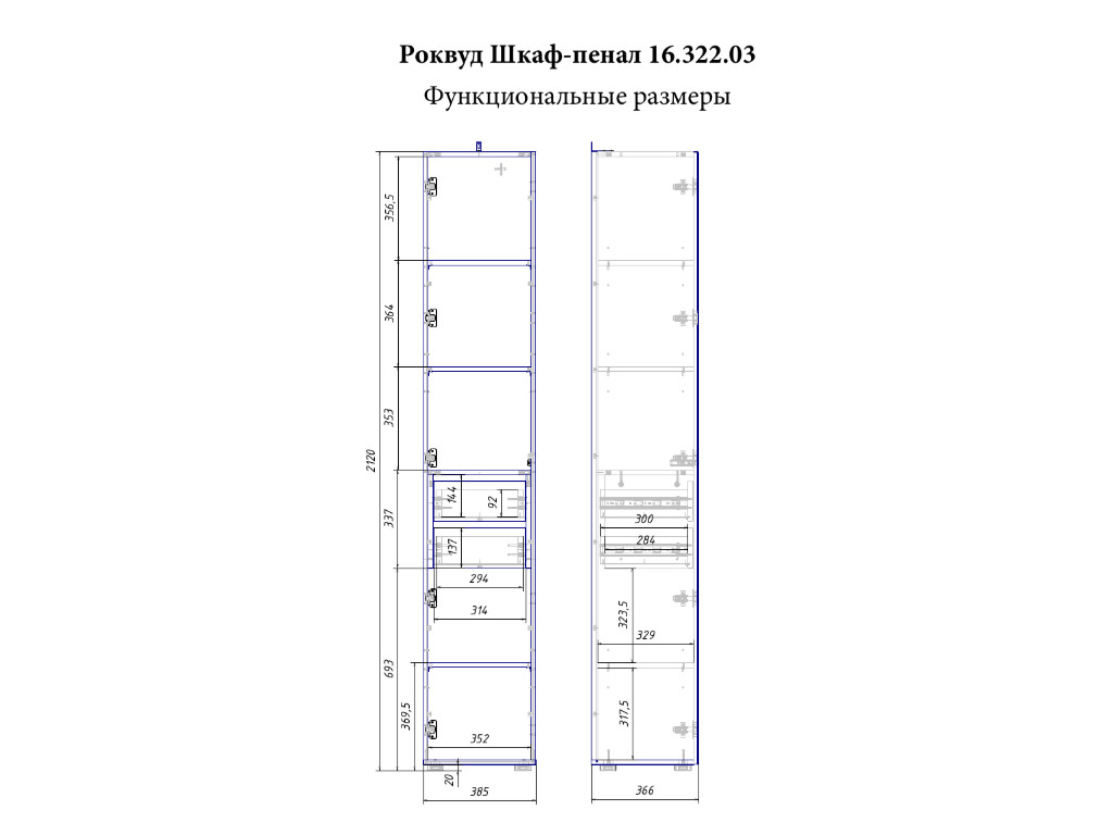 Размер ШхГхВ: 385 x 372, В 2120 мм