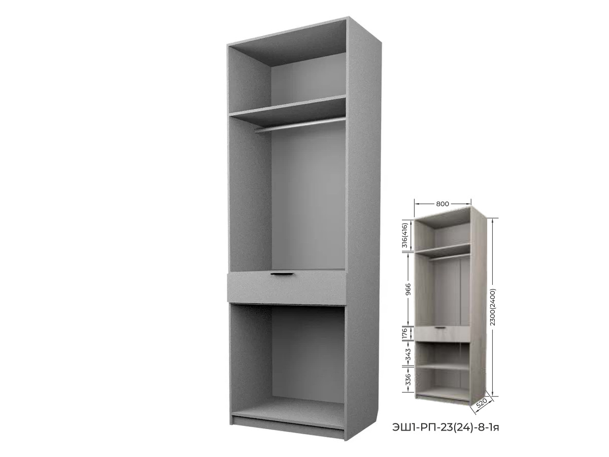 - Шкаф с 1 ящиком со штангой ЭШ1-РП-23-8-1я с зеркалами