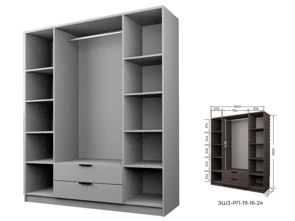 Комплект: ЭШ3-РП-19-16-2я, Шкаф с 2 ящиками + два ЗС-19-2я,Зеркало для шкафов ЭШ 1900 мм + два ЗС-19,Зеркало для шкафов ЭШ 1900 мм