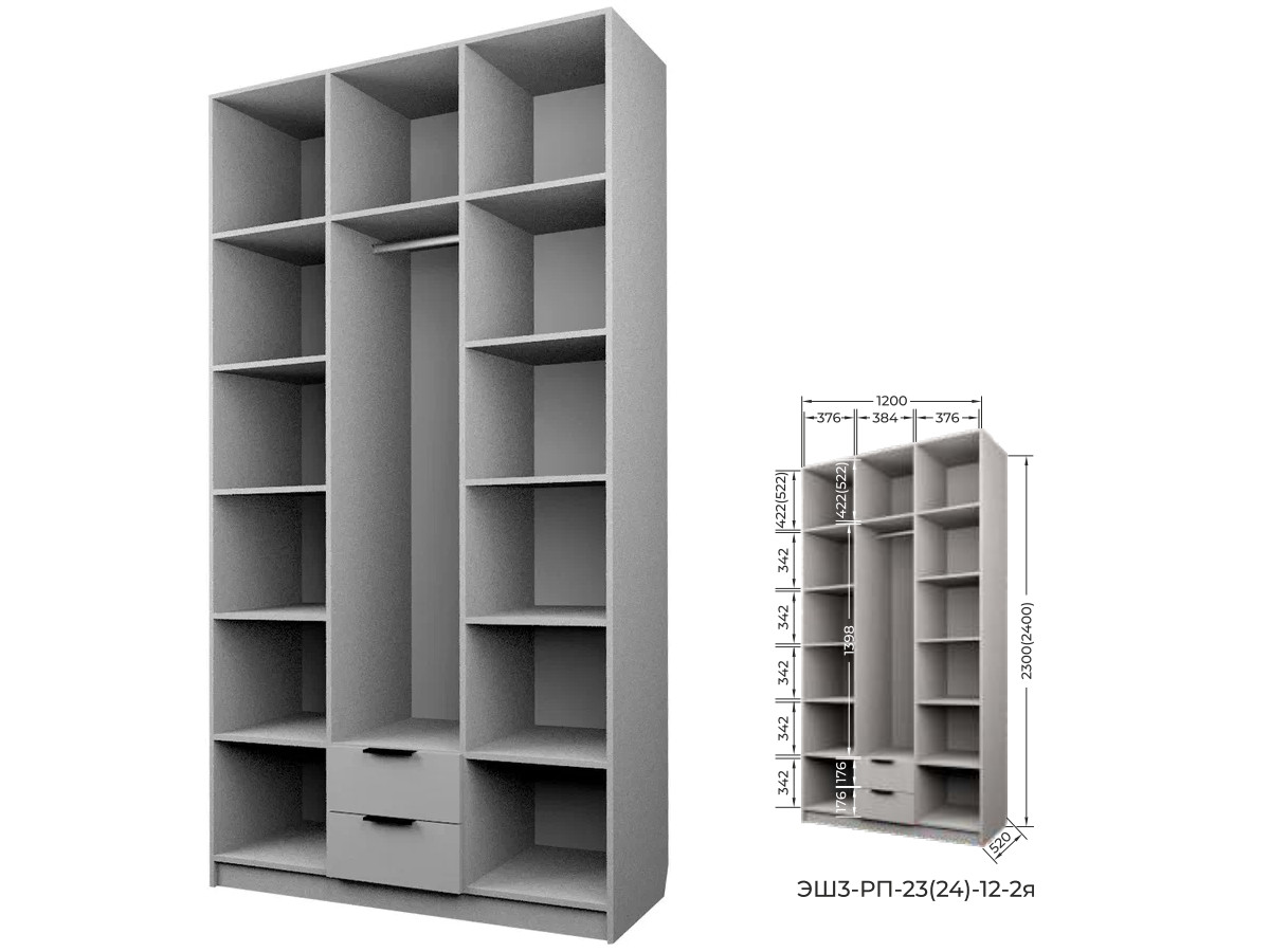Шкаф с 2 ящиками Экон ЭШ3-РП-24-12-2я три зеркала