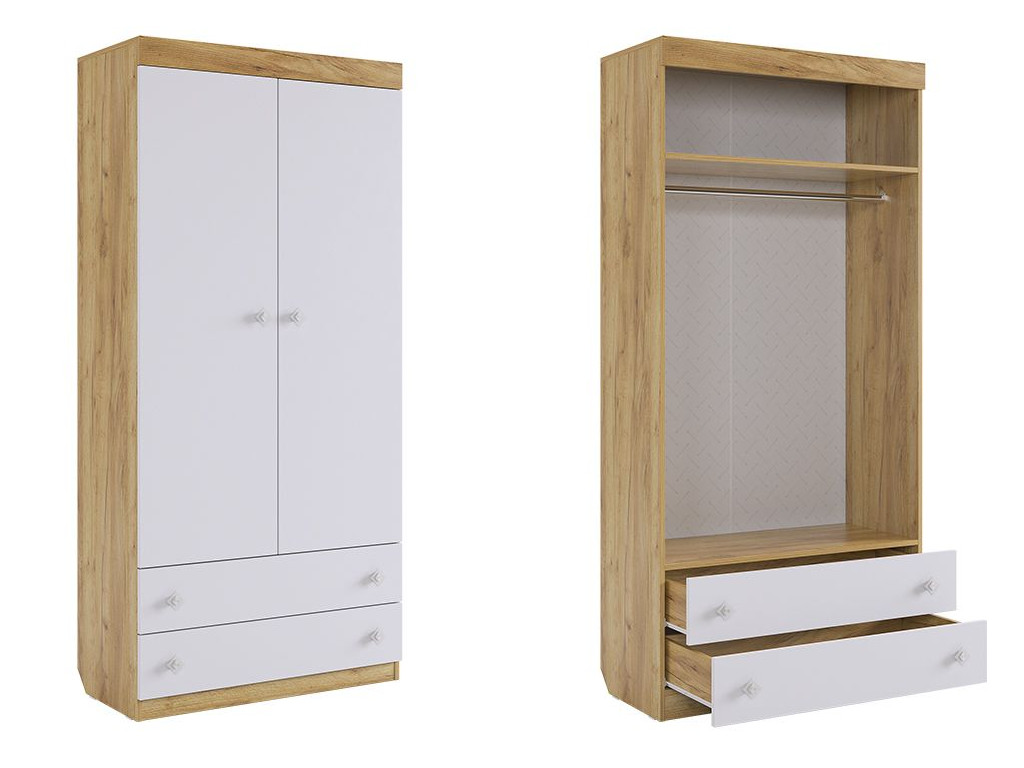 - Шкаф с ящиками двухстворчатый Форсаж дуб крафт золотой/белый