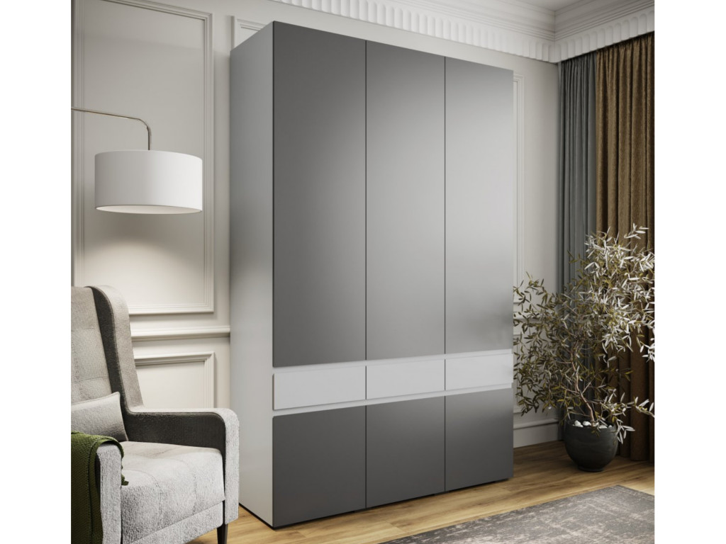 Шкаф трехдверный Мерида серый камень/графит серый