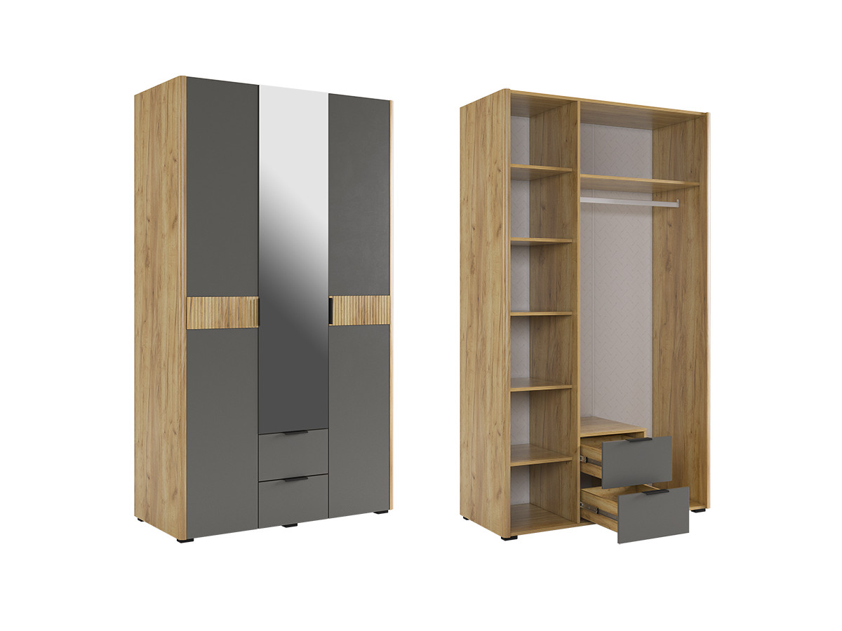 - Шкаф трехдверный с зеркалом Адам дуб крафт золотой/графит
