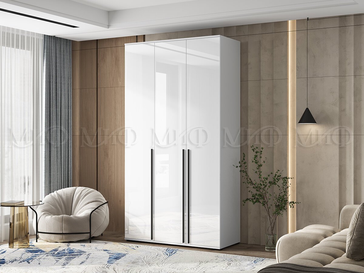 - Шкаф трехстворчатый Норд 1200 белый глянец МГ