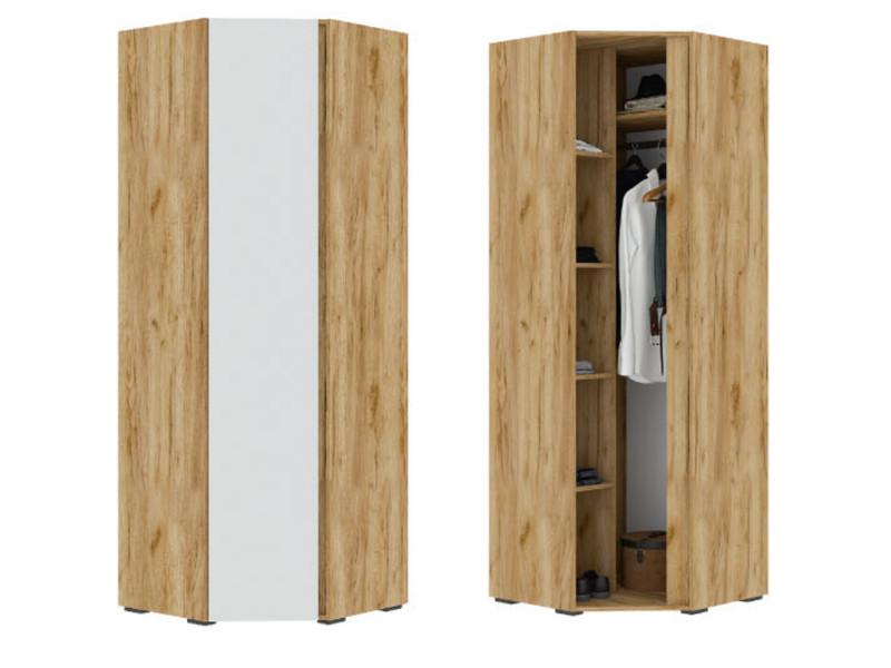 - Шкаф угловой ШК 04 Хелен Дуб Крафт золотой/Белый шагрень
