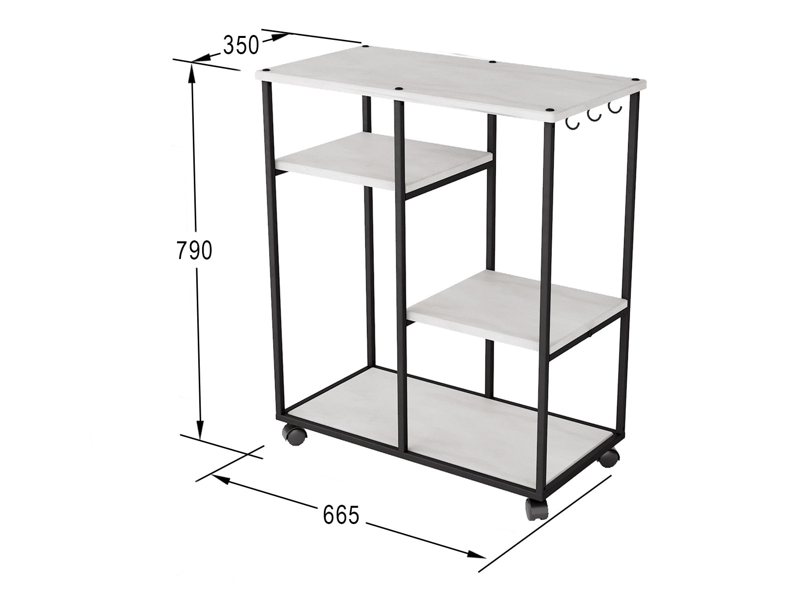 Разборный каркас консоли выполнен из профильной трубы, столешница, полки и основание- из прочного и влагостойкого материала МДФ, облицованного декоративным покрытием в современном цветовом решении.