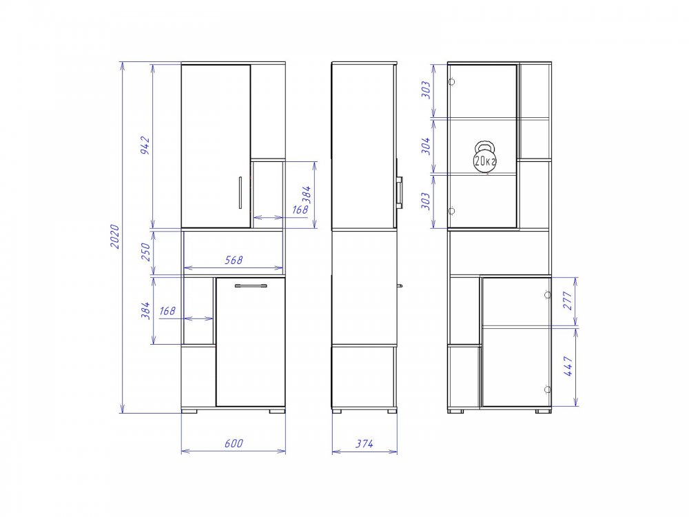 Размер ШхГхВ: 600*380*2020 мм