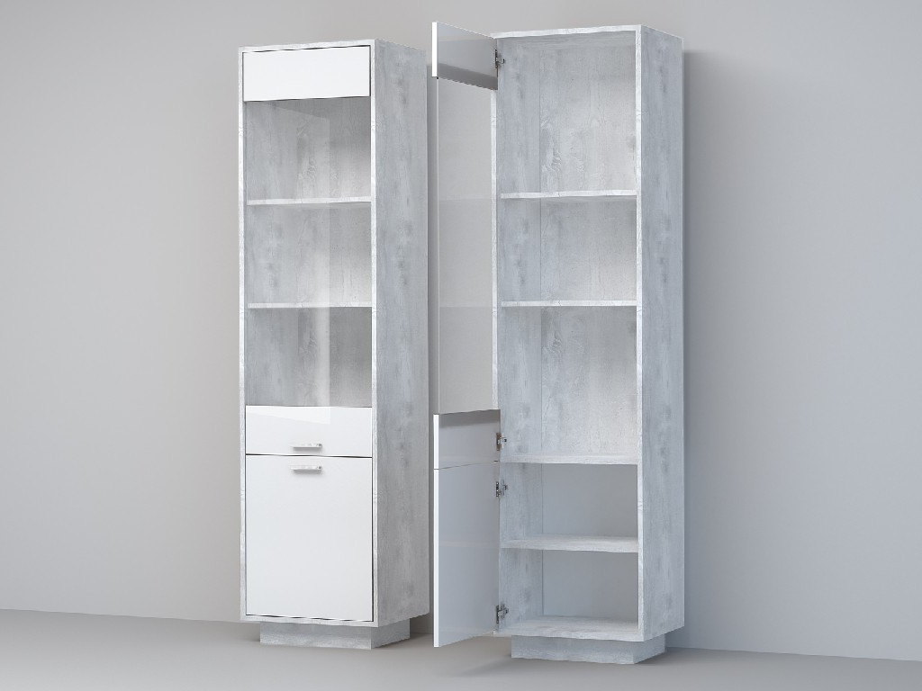 Пенал Эго ПС-1 бетон светлый/белый глянец на цоколе