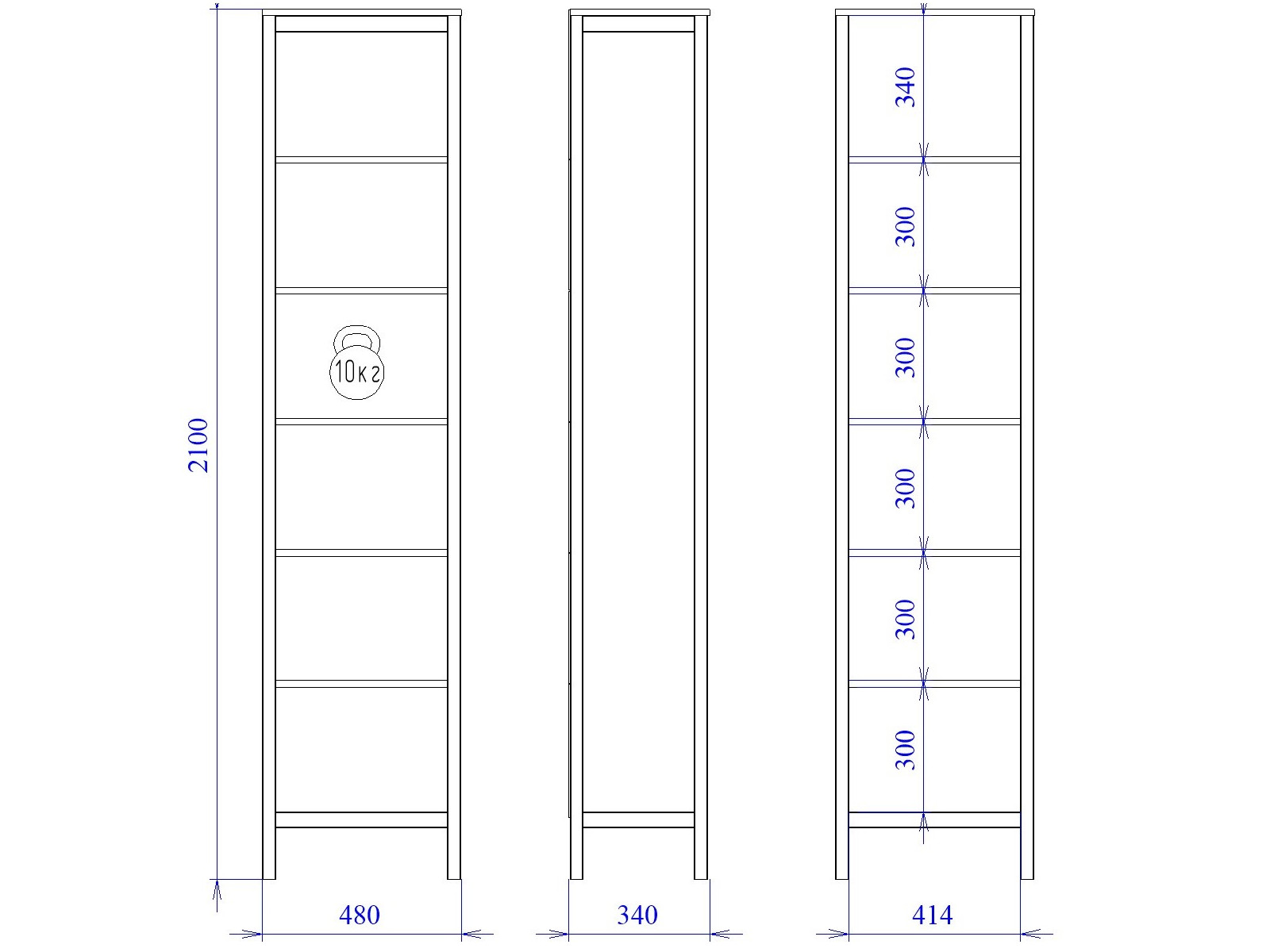 Макс.нагрузка на полку (кг): 10