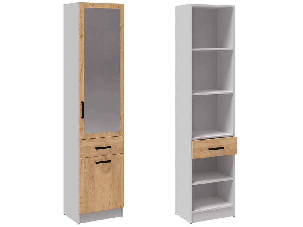 - Пенал с зеркалом Кевин белый/дуб крафт золотой