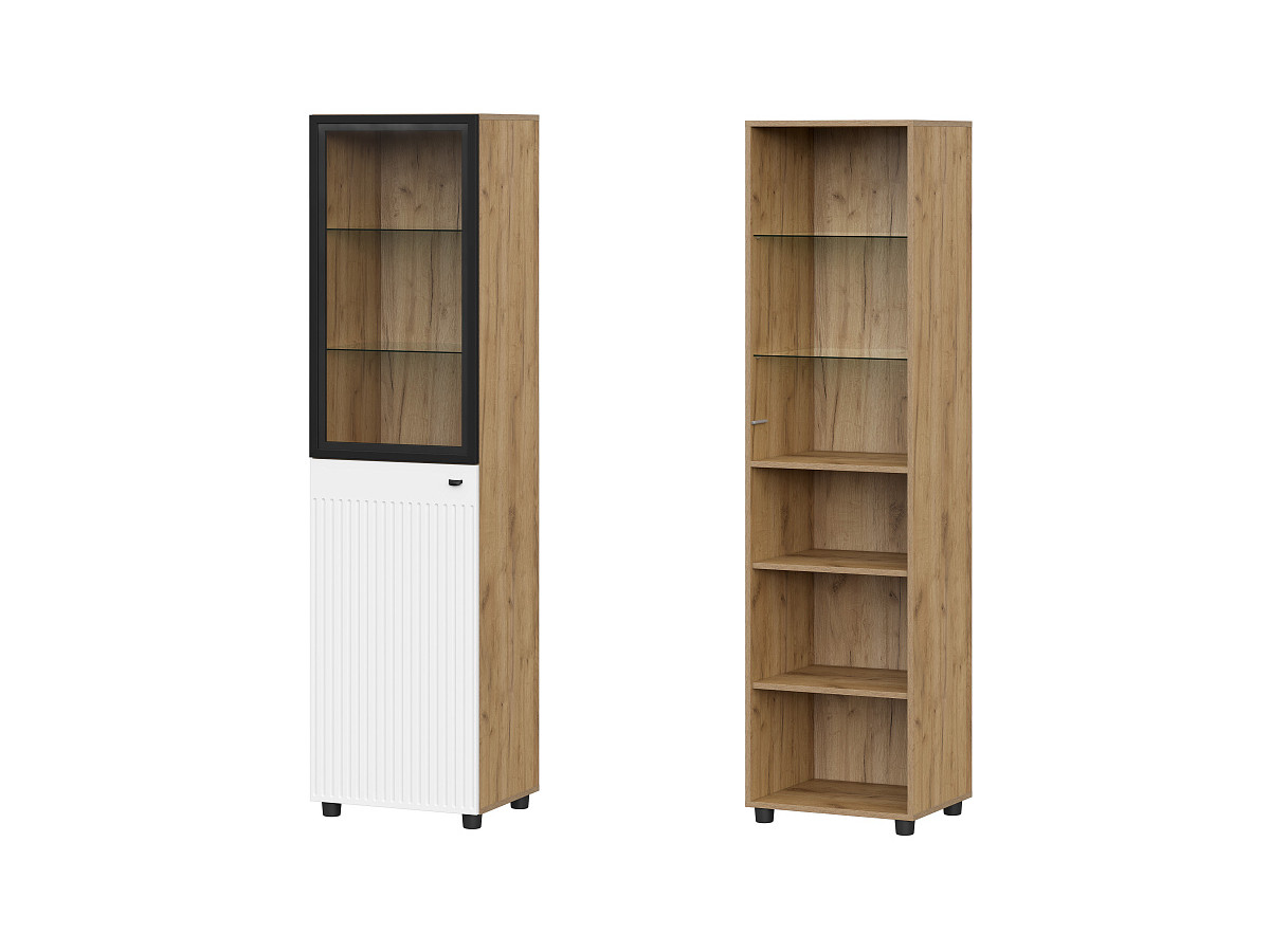 Пенал со стеклом Милан Дуб Золотой/Белый матовый