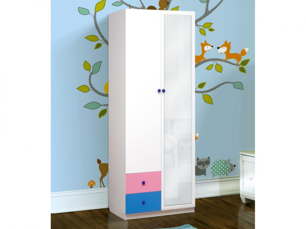 Шкаф 2-х дверный комбинированный с зеркалом Радуга розовый/cиний