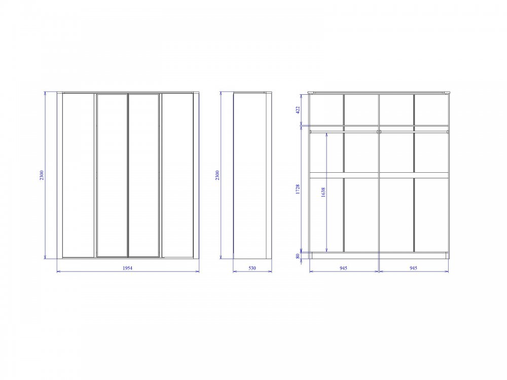 Размер ШхГхВ: 1954*530*2300 мм