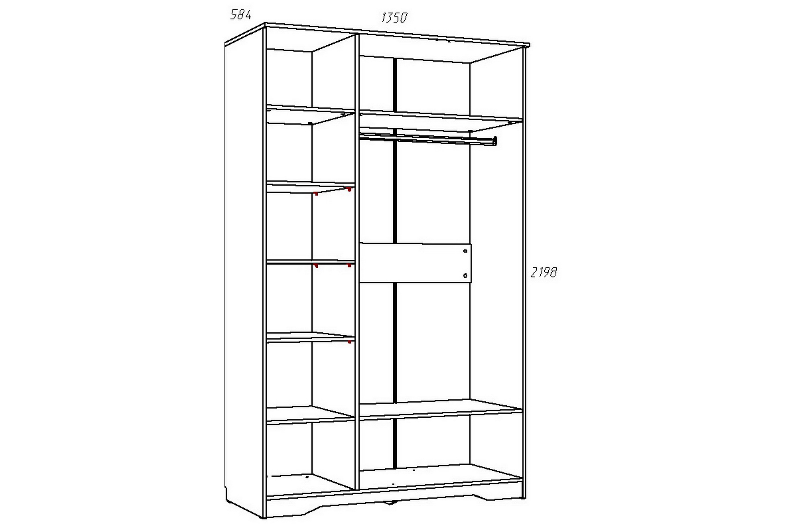 Размеры: Ш 1350 x Г 587 x В 2198